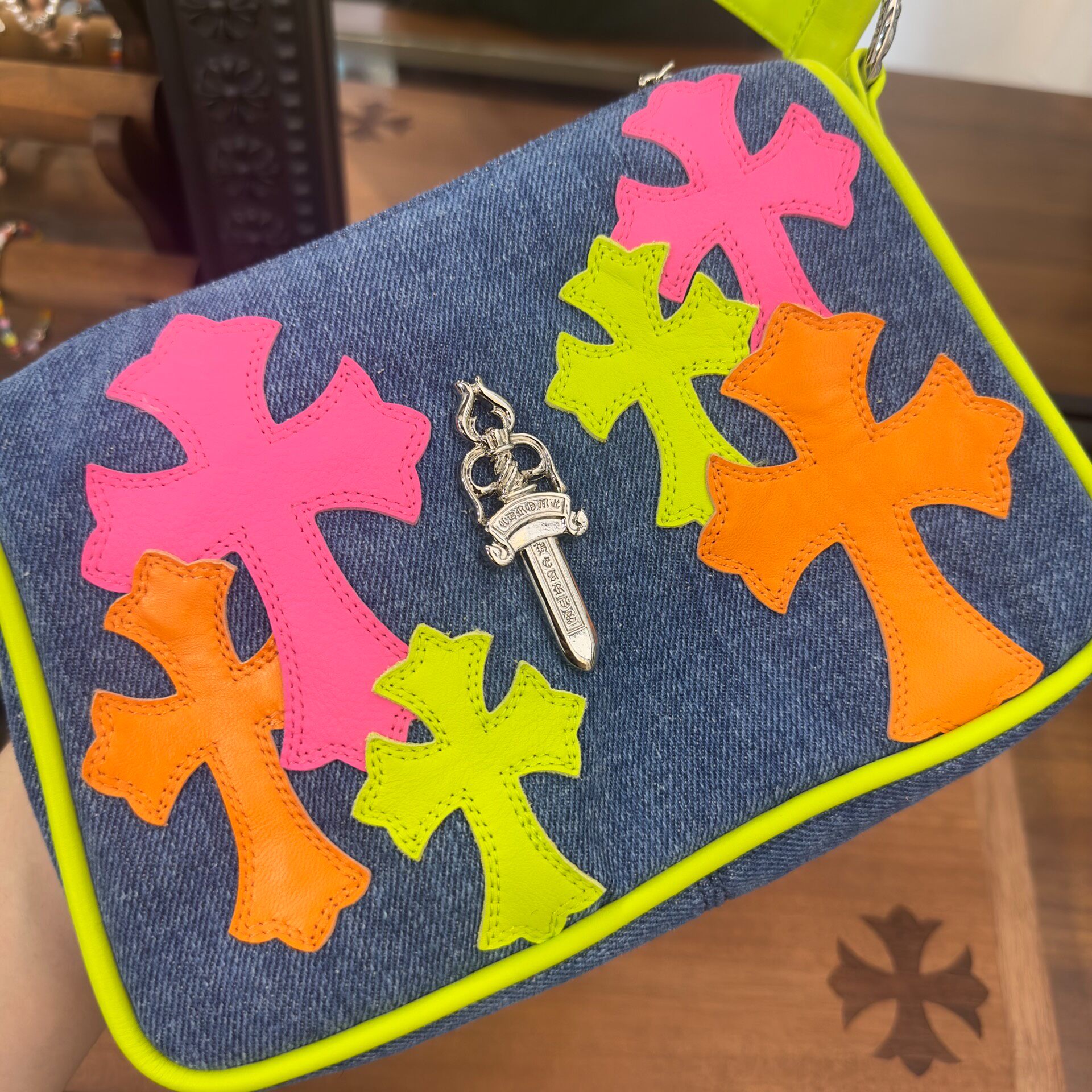 クロムハーツ マイアミアートバーゼル マルチカラーパッチ デニム クロスパッチ ナゲットバッグ