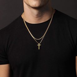 アネージュ クロス ネックレス メンズ レディース 人気 金属アレルギー対応 十字架 アクセサリー サージカルステンレス ベネチアチェーン50cmフリーアジャスター付き